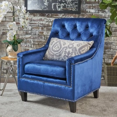 This Christopher Knight Home Jaclyn New Velvet Club Chair is a great addition for any home. With its tufted back and studded trim, this chair is a statement in and of itself. The cushioned seat provides extra comfort while seated, and the tufted back allows you to relax against clouds. Place this chair in your living room as extra seating or add it to your bedroom to make a quiet retreat for yourself. Overall, this Christopher Knight Home Jaclyn New Velvet Club Chair is a must have for your home.