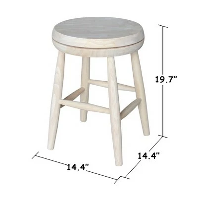 International Concepts home furniture is for those who appreciate high quality, wood furniture with a traditional and elegant look. This dining stool will beautifully complement any decor in your kitchen, dining room or bar area. The stool is made from solid hardwood and measures 14.4″W x 14.4″D x 19.7″H. The stool features a swivel seat. It is unfinished, allowing you to match any decor. The stool comes fully assembled and ready to use.