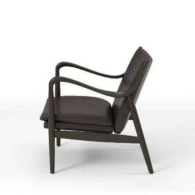 With a touch of masculinity and finesse, this accent chair from the Kelowna collection features a dark brown frame with swooping, bentwood-style arm rests. With a padded backrest and cushion wrapped in a matching brown linen-like vinyl, this chair lends itself honestly to any room with understated grace. Place this accent chair in a mid-century modern living room or home office for a place to rest and reflect.