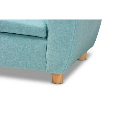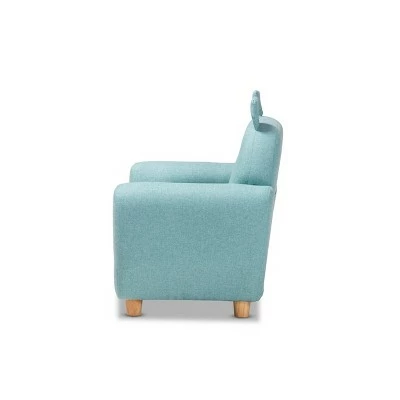 Easily enhance your child’s room or play area with the Gloria armchair. Made in China, the Gloria is comprised of a wooden frame padded with a generous layer of foam and upholstered in a vibrant sky blue fabric. The backrest features two yellow buttons and two fabric ears, accenting the Gloria with child-like imagination and allowing the piece to easily blend in with toys and stuffed animals. Requiring minor leg assembly, the compact size of the chair ensures easy and comfortable use for small children. A friendly design that also provides superb comfort, the Gloria chair is an excellent addition to any play space.