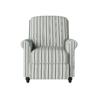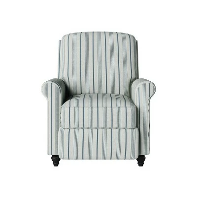 Sit back and relax in this transitional reclining chair with a square back and rolled arms that’s covered in a linen farmhouse-inspired fabric. Simply push back to recline, no levers or buttons required. The rolled arms offer the perfect amount of support, while the cushions provide comfortable long-term sitting, TV viewing or a relaxed recline. The style lends itself to both traditional and more modern living rooms, media rooms and master bedrooms.