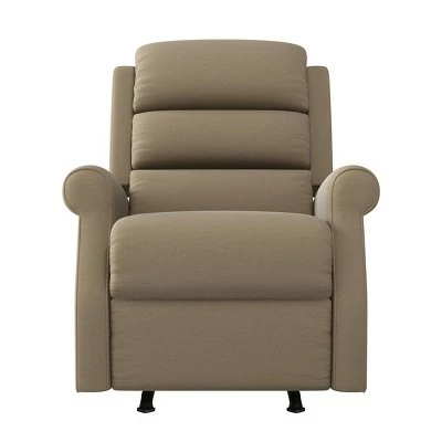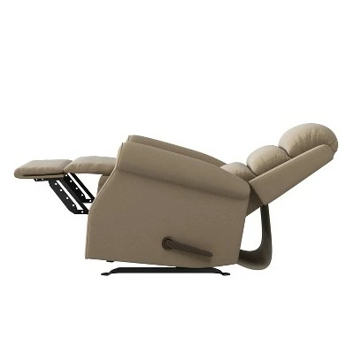 With padding in all the right places, this rocker recliner is bulit with the left-hander in mind. The chair features the reclining handle on the left side as well as a square back, side wings and round arms, all covered in a plush low-pile velour fabric. Perfect for a family room, bedroom or media room, this comfortable recliner allows you to rock back and forth, or recline and will provide the ultimate spot to sit back and relax.