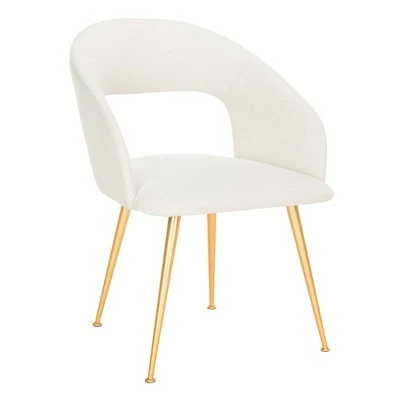 The soft modern style of this contemporary linen blend armchair is an investment for the dining room or living room. Crafted with a gently curved back, its ethereal cut-out design features a luxurious soft pastel hue complemented by gold-finished capped legs. The cool mod design and metallic details of the Lorina Arm Chair makes it a perfect addition for contemporary, modern, or transitional rooms. It is available in two colors to best complement your personal style and decor.