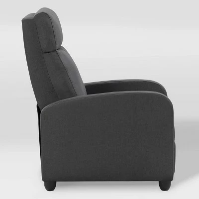 Cozy up in this recliner in your living room, den, or entertainment space. Designed with comfort in mind, this sturdy recliner is upholstered in an easy-to-maintain fabric with foam padded cushions designed for all-day comfort. Complete with a fully extending footrest, this recliner will have you relaxed in your favorite space in no time.