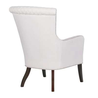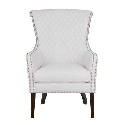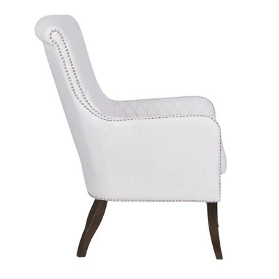 Relax in the luxurious style of the Killeen Accent Chair. This modern accent chair takes on a classic twist with a quilted back and elegant silver studs lining the arms and seat. A high-density foam cushion fills the seat for exceptional comfort, while solid wood legs with a Morocco finish provide excellent support. Perfect in the living room or home office, this accent chair add elegance to your home décor. Leg assembly is required.