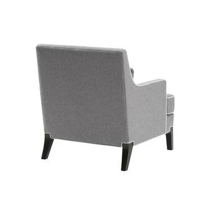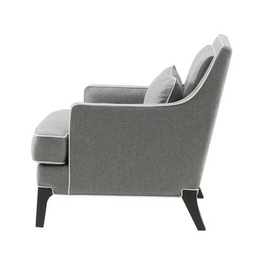 Elevate your living room with the Collin Arm Chair. This traditional style accent chair features an ivory welting to contrast the lines of the pulled-back upholstery. The chair fabrication consists of 100% polyester in a heather gray hue. Includes a matching lower back pillow to bring extra comfort and back support. Leg assembly required.