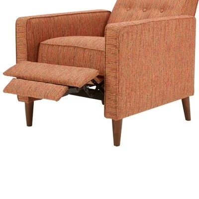 Classic meets contemporary with the Kane Push Back Recliner. The slim and sleek design creates and eye-catching piece for your living room. The button-tufted back adds a touch of modern charm to the design. High-density foam filling and solid wood legs provide long-lasting comfort and support, while the reclining feature makes it easy to kick back and relax. Upholstered in polyester fabric, this push back recliner will make the perfect addition to your home decor. Assembly is required.
