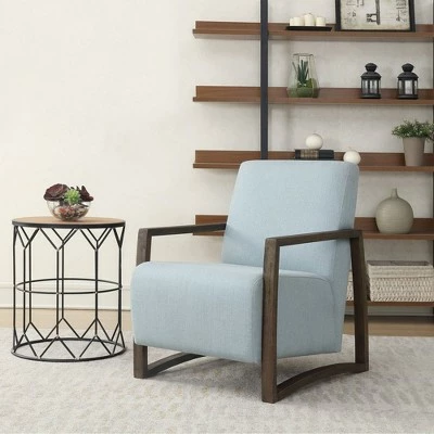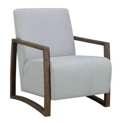 The Picket House Furnishings Maverick Accent Chair is the missing piece to your home! This accent chair features a super cool, sleek show wood frame on both sides of the chair. The walnut finish on the wood frame pairs beautifully with the transitional color of the fabric, making it super easy to pair with any existing furnishings or decor. The bottom of the frame is slightly arched, adding extra style to this already stunning chair. The seat and back are foam filled providing comfort during the longest of conversations that you are sure to have while relaxing in this chair.