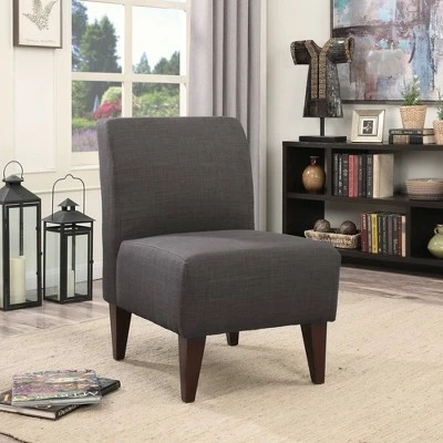 The Picket House Furnishings North Accent Slipper Chair is a charming slipper chair covered with a stylish blue fabric upholstery. Its chic armless design sits low to the ground, making it the perfect compliment to a dressing room. Dark espresso legs complete this fashion forward piece. Add this armless accent chair to your home today for a look that will never go out of style!