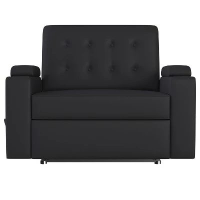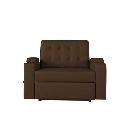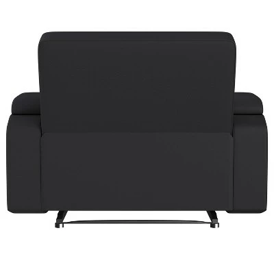 - Padded arms include 2 cupholders and deep well storage in each arm