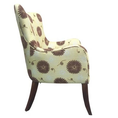 Patterned Fabric Upholstered Sofa Chair with Flared Legs, Brown and Yellow