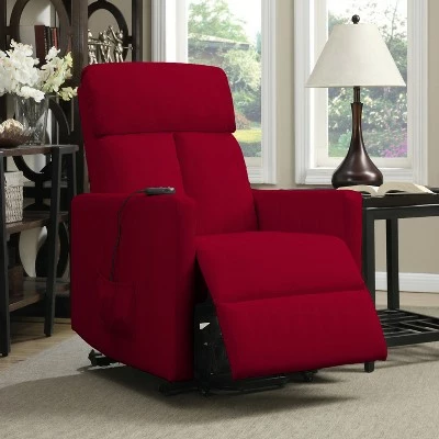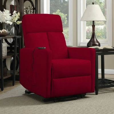 The ProLounger lift recliner by Handy Living is a wonderful addition to your home, makes getting out of your seat a breeze. Wall hugger design only needs 4-inches of clearance from the wall to recline or lift and uses less floor space when reclining. Covered in microfiber. Easy to open, close and lift with the included wired power control. The wired controller has 2 easy to use buttons for lifting or reclining, simply hold the button until your comfort level is reached. The side pocket holds the wired controller in place so you’ll never lose track of it. 95 inch power cord is UL approved. Covered in a durable, stain resistant 100% polyester microfiber. Full chaise pad between the chair and the leg rest to support the legs for a truly comfortable recliner. Cushions are filled with high density foam, polyester fiber and independently wrapped pocket coils. Constructed with a laminated hardwood frame. Steel reclining mechanism. Insulated spring clips for noise reduction. Our efficient product and package design allows us to use less fossil fuel throughout the entire supply chain than standard, set-up furniture uses. Ships in one (1) box. Assembly required. Takes less than 10 minutes to assemble. Imported. In stock items ship within 1-2 business days.