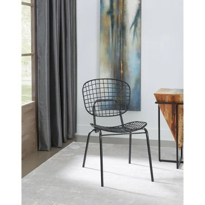 Who knew a metal chair could be so comfortable!! Our Accent Chair has a rich black powder coated finish, and a backrest and seat that is made with an open weave design, gently contoured to cradle your body as you sit. An ideal companion for our Sheesham and Iron Writing Desk, or anywhere that extra seating is needed.