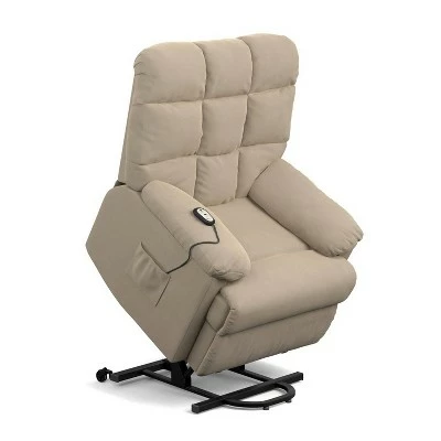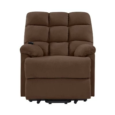 The ProLounger power lift recliner is covered in a microfiber fabric and provides padding in all the right places for ultimate comfort. The 3-position recliner transitions between reclining, sitting and lifting and can stop at any position in-between with the easy to use wire attached remote.It is a power lift and recline chair and it requires 14.5โ from the wall to fully recline. Covered in a durable, stain resistant microfiber. Durable easy clean 100% polyester fabric. Perfect for living rooms, bedrooms, theater rooms and media rooms. Ultra padded arm rests add to the comfort. Full chaise pad between the chair and the leg rest to support the legs for a truly comfortable recline. Convenient side pocketย provides a place to store the wired remote close at hand. UL approved, easy-to-use wired controller. Recliner is 68 inches fully reclined, 41 inches from the back of the seat to the footrest, 28 inches from the seat to the top of the recliner. Cushions are filled with high density foam, polyester fiber and independently wrapped pocket coil spring system for a custom sit. Constructed with a laminated hardwood frame. Sturdy sinuous spring seating. Steel reclining mechanism. Insulated spring clips for noise reduction. Seats up to 300 lbs.. Ships in one (1) box . Takes less than 15 minutes to assemble with included instructions. no tool assembly. Imported. color may vary