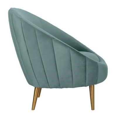 A modern update of the classic arm chair, the Razia Tub Chair is brimming with artful sophistication. Artfully crafted in smooth, richly colored velvet and shimmering gold legs, this chair makes an elegant statement in any living room. The cool mod design and metallic details of the Razua Channel Tufted Tub Chair makes it a perfect addition for contemporary, modern, or transitional rooms. It is available in multiple colors to best complement your personal style and decor.