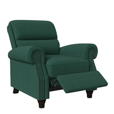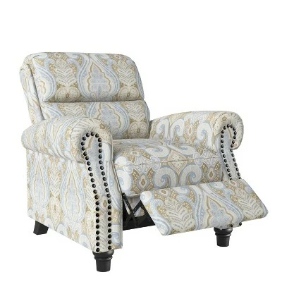 - Features: Spring Core Cushions, Press-Back Recline, Nailhead Trim