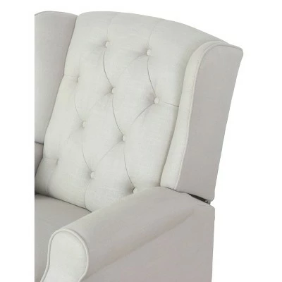 The Scarlett Fabric Pushback Recliner by Abbyson comes in a neutral, light gray color that will fit your décor style. The linen-textured polyester upholestry is durable and features hand-stitched detailing and buttoned tufts. The legs of this recliner also have great detail and add a unique touch to this smooth, pushback recliner.