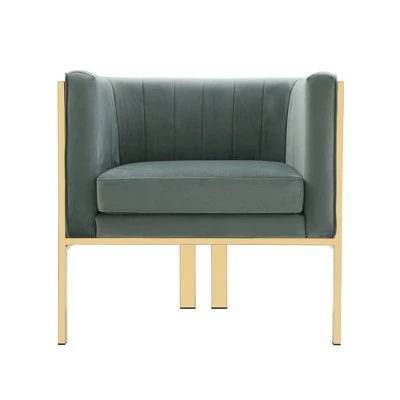 Lounge in 1920s luxury. This sophisticated accent chair is a modern, assertive take on the classic Art Deco style. An open architectural frame in polished brass wraps around the plush velvet seat, creating an inviting combination of simplicity and luxury. The seat’s backrest is accented with vertical stitching to complement it’s geometric frame. The symmetrical, streamlined look will add an evocative touch of distinguished ‘20s glamour to any space.