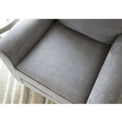 You will love the swivel and gliding motion of the Simon Fabric Gliding Chair by Abbyson. Nothing tops the gentle motion for comforting your little ones or even for relaxing while reading or sitting by the fire. Foam and polyester cushions and padding provide a soft, yet supportive place to meditate, while the pine and hardwood frame give it a strong base.