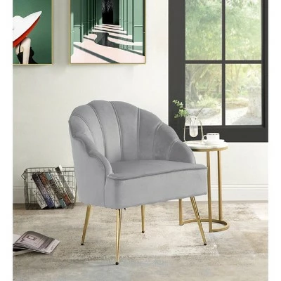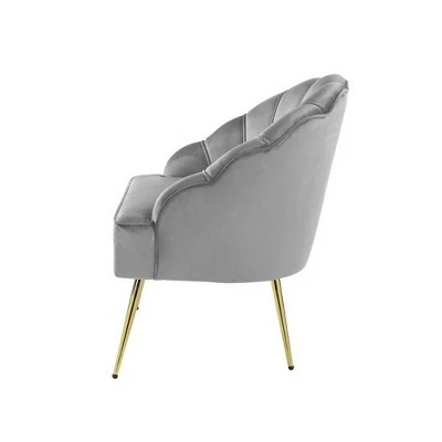 Glam up your home with the modern velvet accent chair! The fabulous design of the seashell edges, vertical tufting, and gold legs will dazzle your guests in any room setting. Beautiful from any angle, accent chair will add a visually striking appeal to your living room, bedroom, lounge room, entry way, and more.
