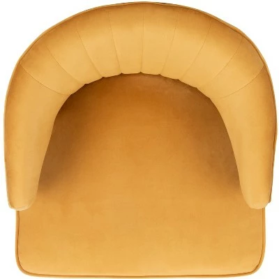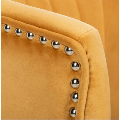 Curl up and unwind in this retro style wingback accent chair. Inspired by vintage designs, its plush velvet upholstery with luxurious channeling is an instant invitation to relax. The chic metal caps on its wood legs complete its retro look. Care Instructions: To prevent overall soiling, frequent vacuuming or light brushing is recommended. Cushions and pillows should be turned on a weekly basis. Down filled cushions should be brushed rather than vacuumed. Spot clean, using a mild water free solvent or dry cleaning product. Only a professional cleaner should undertake a complete overall cleaning. The use of steam or water based cleaners may cause excessive shrinking or staining.