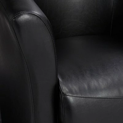 - Rivera Black faux leather upholstery. Features thick seat, back, and arm padding for maximum comfort.