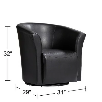 Use this swivel accent chair with a River black faux leather upholstery and thick padding to complement your stylish décor with elegance and comfort.