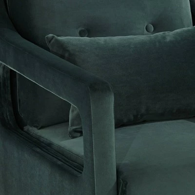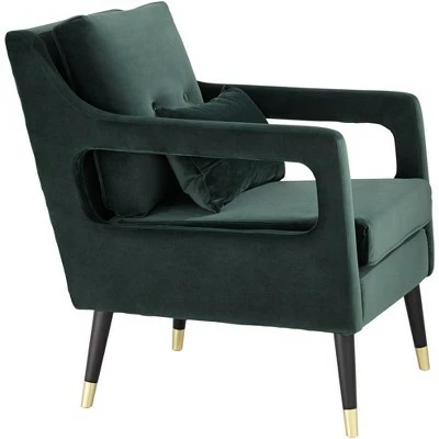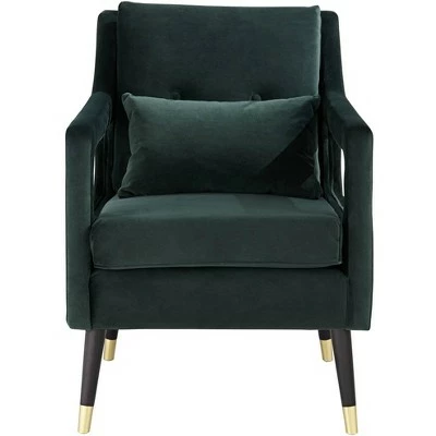 Made for relaxing and lounging in, this comfortable design is an ideal pairing for a living room, home study or office. From the 55 Downing Street brand, it features a modern profile with open cut-out arms. The comfy Hunter green fabric contrasts with the black finish legs with gold accents.