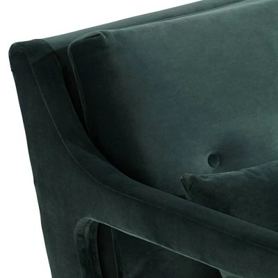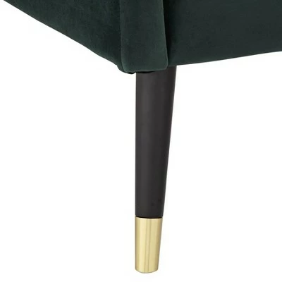 - Comfy Hunter green color fabric. Gold finish accents on black finish wooden legs.