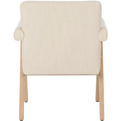 Relax and indulge in modern luxury with this sleek and soothing mid century arm chair. Inspired by master artisans, it’s finely crafted with authentic walnut wood and generously upholstered in a rich oak hue. Designers adore its bolster style round arms. Care Instructions: Dust regularly with a soft, dry cloth. Never use oiled or treated cloths on lacquered finishes. Some finishes can be wiped with a damp (not wet) cloth, followed at once by rubbing with a dry cloth to remove fingerprints and smudges. For persistent spots, gently clean with a soft cloth and a solution of water and mild soap, make sure to wipe dry. Use adhesive felt pads, coasters and placemats to protect your furniture.