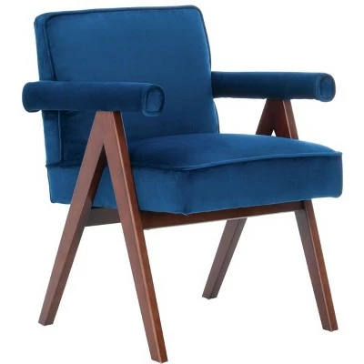 Relax in modern luxury with the sleek design of the Suri Mid Century arm chair. Inspired by master artisans, Suri is finely crafted with rubberwood in a warm walnut finish and generously upholstered in rich, plush velvet. Designers adore its bolster style round arms. Care Instructions: Dust regularly with a soft, dry cloth. Never use oiled or treated cloths on lacquered finishes. Some finishes can be wiped with a damp (not wet) cloth, followed at once by rubbing with a dry cloth to remove fingerprints and smudges. For persistent spots, gently clean with a soft cloth and a solution of water and mild soap, make sure to wipe dry. Use adhesive felt pads, coasters and placemats to protect your furniture.