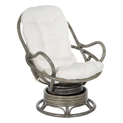 Kick back and relax with our Tahiti Rattan Swivel Rocker. This woven rattan rocker will turn up the wow factor in any room. A great seating option for watching movies, gaming or just kicking back and taking it easy. Plush poly-fill cushion with channel pocket stitching, in 100% Polyester, creates billowing comfort. Simply tie cushion onto solid rattan and woven frame. Smooth ball bearing swivel action and relaxing rocking motion will ease away the day’s stresses while adding natural Boho style to your home. Simply untie the ample removable cushion and shake out to fluff up for years of sublime, cozy comfort.