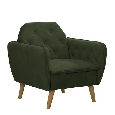 Style up your home with the Novogratz Tallulah Memory Foam Chair! Designed with a rounded and glamorous silhouette, this piece will be sure to bring elegance and style to your home. This accent chair is upholstered in soft velvet and features slanted wooden legs and diamond button-tufted details that bring out the glam of the Mid-Century. Built to last, it has a sturdy frame made with wood and a filling made of high-density foam as well as responsive memory foam for ultimate plush comfort when you sit. Available in multiple colors, the Tallulah is the ideal statement piece to bring a pop of color in your living room, home office and even bedroom. It ships in one compact box and it is simple to assemble. Match with the Novogratz Tallulah Futon and Daybed to get the full look!