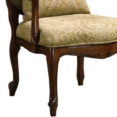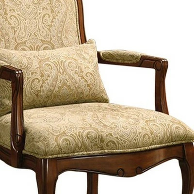Transform the aesthetics of your living space with the inclusion of this sophisticated and generous accent chair, including 1 matching pillow. Constructed from solid wood, it features textured leatherette seat and backrest with padded armrests for comfort. It is supported by cabriole legs, providing stability and durability.