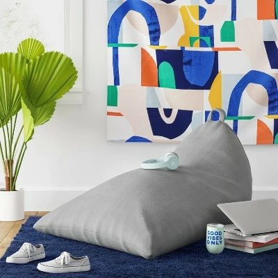 Elevate your casual seating with this Triangle Bean Bag Chair from Room Essentials™. This upholstered chair gives a comfortable spot for lounging and relaxing. It features a triangle shape with a backrest for a unique look. The light and fluffy fill material helps to retain the shape and offers maximum comfort as you sit back to read a book, watch television or use it as a gaming chair. Plus, it has a removable machine washable cover, along with an attached fabric handle for easy carrying.