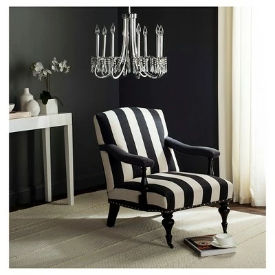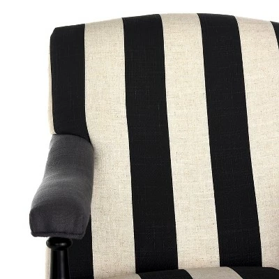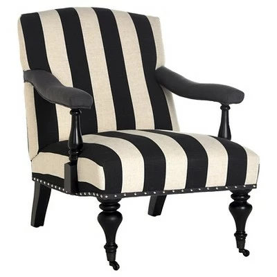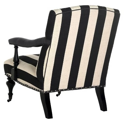 Inspired by a 17th century antique found in Madrid, this armchair is a contemporary classic. Its striking traditional frame is paired with impeccably tailored charcoal and white awning striped upholstery and finished with polished silver nail heads and dark casters. With an eye-catching gray and white color, they are easy to style and go well with multiple decor styles, especially glam, contemporary, and modern decor. This upholstered dining chair requires assembly and have a sturdy build of 275 pounds.