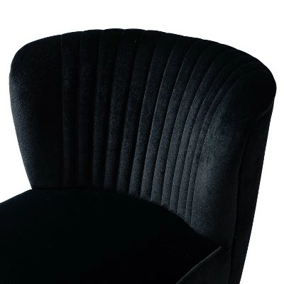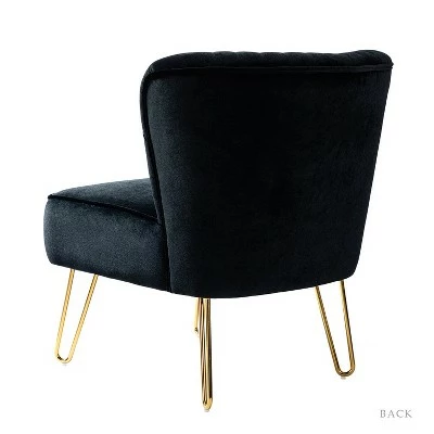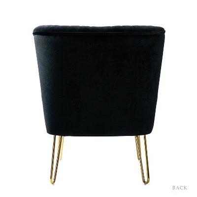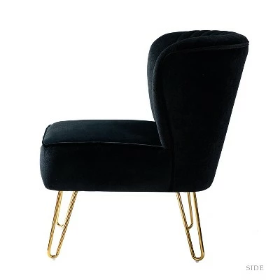 Looking to add a side chair to your living room or bedroom? This one is in keeping with your glam sensibilities, adding an eye-catching touch to your space. This is the classic and contemporary style accent chair with channel tufted back. Made with premium velvet fabric, comfortable for skin touch, and features an on-trend solid hue thatโs bound to blend in with your color scheme. High-density foam filling with a solid and manufactured wood frame provides comfort and support. The polished golden metal U-shaped legs bring modern design and add to the timeless fashion of this piece. Plus, this chairโs armless seatback leaves plenty of elbow room for existing furniture. It’s the perfect pick for living room, office room and bedroom.Item Size:26″Wx30″Dx31.5″HSeat size:22″Wx20.5″Dx18″H