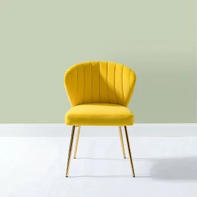 This classic and traditional style accent chair with pleated details is the perfect pick for small space. Whether drawn up to your dining table or rounding out your living room with an extra seat, a small side chair like this is a great option wherever you need it. Made with premium velvet fabric,comfortable for skin touch. High-density foam filling with a solid and manufactured wood frame provide comfort and support.The slender polished gold metal legs bring the modern design,and add to the timeless fashion of this piece.Overall: 20″Wx19.5″Dx30″H, Seat: 19″Wx16.5″Dx17.5″H