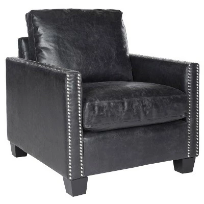 For a classic club look with modern updates, look to the Safavieh Venice Club Chair. The classic club silhouette is present here, but upgraded with a shiny, trendy nailhead trim. Generously padded loose cushions can be moved around to suit your body. Upholstered in an attractive black faux leather, this chair is the perfect blend of timeless design and easy comfort. Put it in your living room, or in a nice cozy corner where you can curl up with your favorite book.