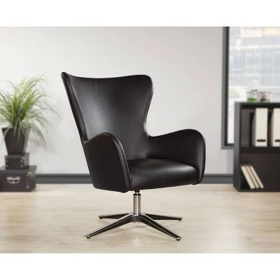 Elevate your space with the Ultra-Modern Swivel arm chair by WorkSmart. The chair’s curved silhouette works well in any contemporary setting. Angled, high backed design and faux leather cushioned seat invite you to lean back and relax. The sinuous lines of the seat contrast with the strong angles of the four starred polished aluminum base. A 360º swivel allows for flexibility and comfort, perfect for any contemporary office, lobby or workspace.