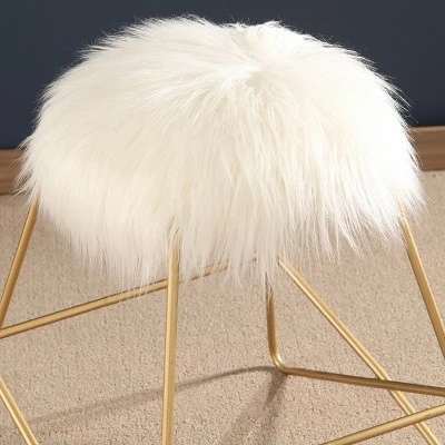 Bring a glam finishing touch to any room with the Zafir Faux-Fur Vanity Stool from Abbyson Living. This square stool features gold-finished legs that taper toward the top, and is finished off with long faux fur to create a standout look no matter where you display it. Place in front of to your favorite armchair to kick up your feet after a long day, or use it as an extra seat when entertaining guests for game night.