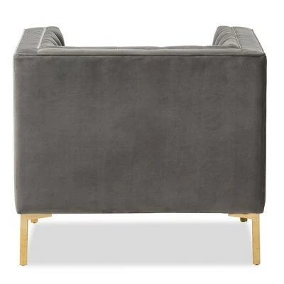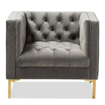 Instantly add an elegant, luxurious look to your home with the Zanetta lounge chair. The luxe and glamour-inspired design comes through in the clean, square silhouette of the chair. The Zanetta is foam-padded for sumptuous comfort, and upholstered in a stylish velvet. The upholstery is delightfully complemented by the glossy, gold-finished legs of the chair. The lounge chair features a gorgeous button-tufting design and edge piping for a sophisticated look. Welcome guests to your livingroom or reception area with the chic Zanetta, or even add it to your entryway for extra seating and a touch of glam. Made in China, the chair requires assembly. Dimensions: 29.13″ High x 33.07″ Wide x 34.25″ Deep; Seating Dimensions: 17.32″ High (from Floor) x 21.26″ Wide x 23.23″ Deep; Arm Height: 11.81″ High; Height (from Floor to Top of Arms): 29.13″ High; Back: 11.81″ High; Legs: 7.09″ High